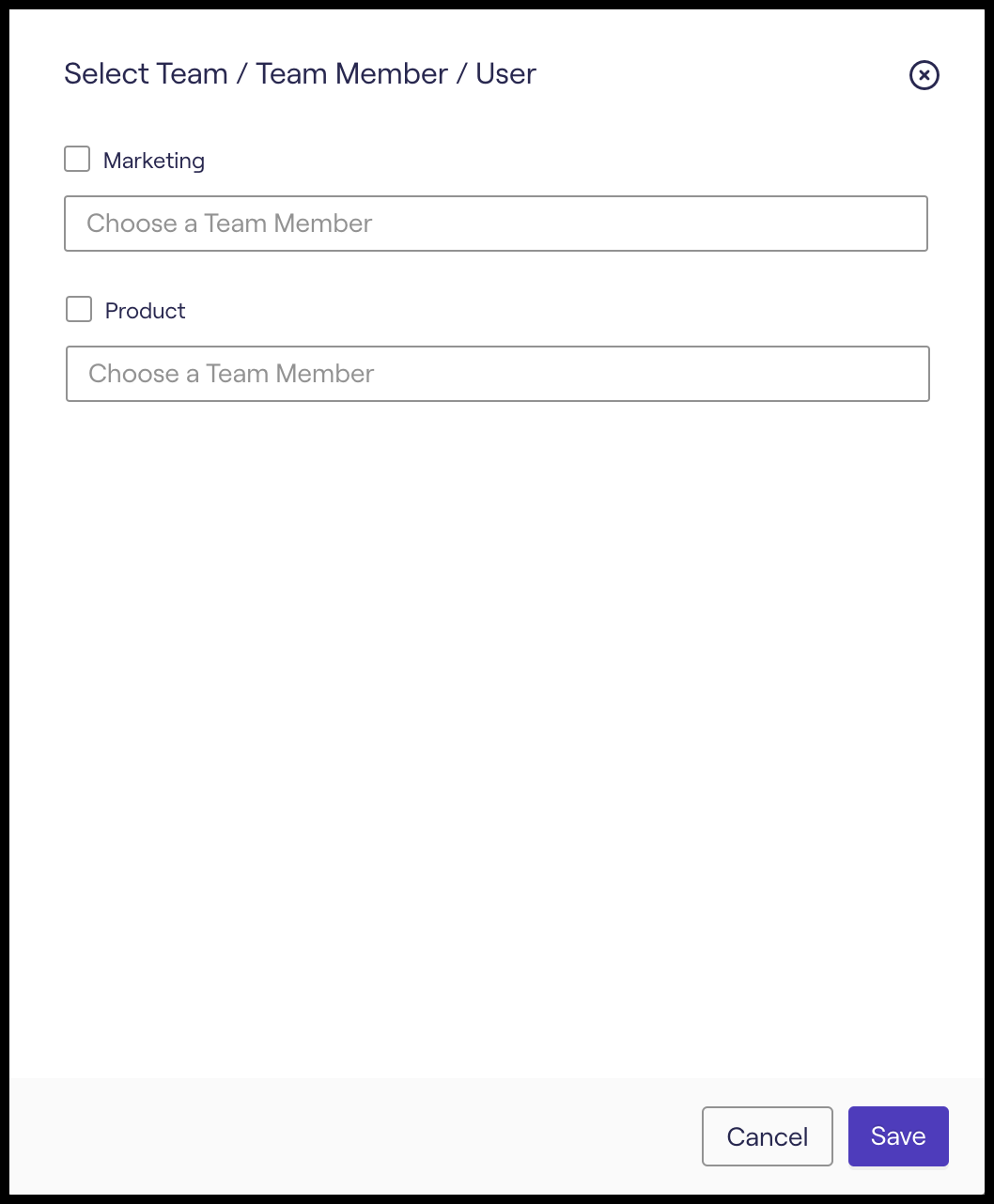 A pop-out will appear allowing you to assign the search to an entire team, or members of specific team, or an individual user. Once the search is assigned, click Save and the team or user will see the search within their Saved Searches page.