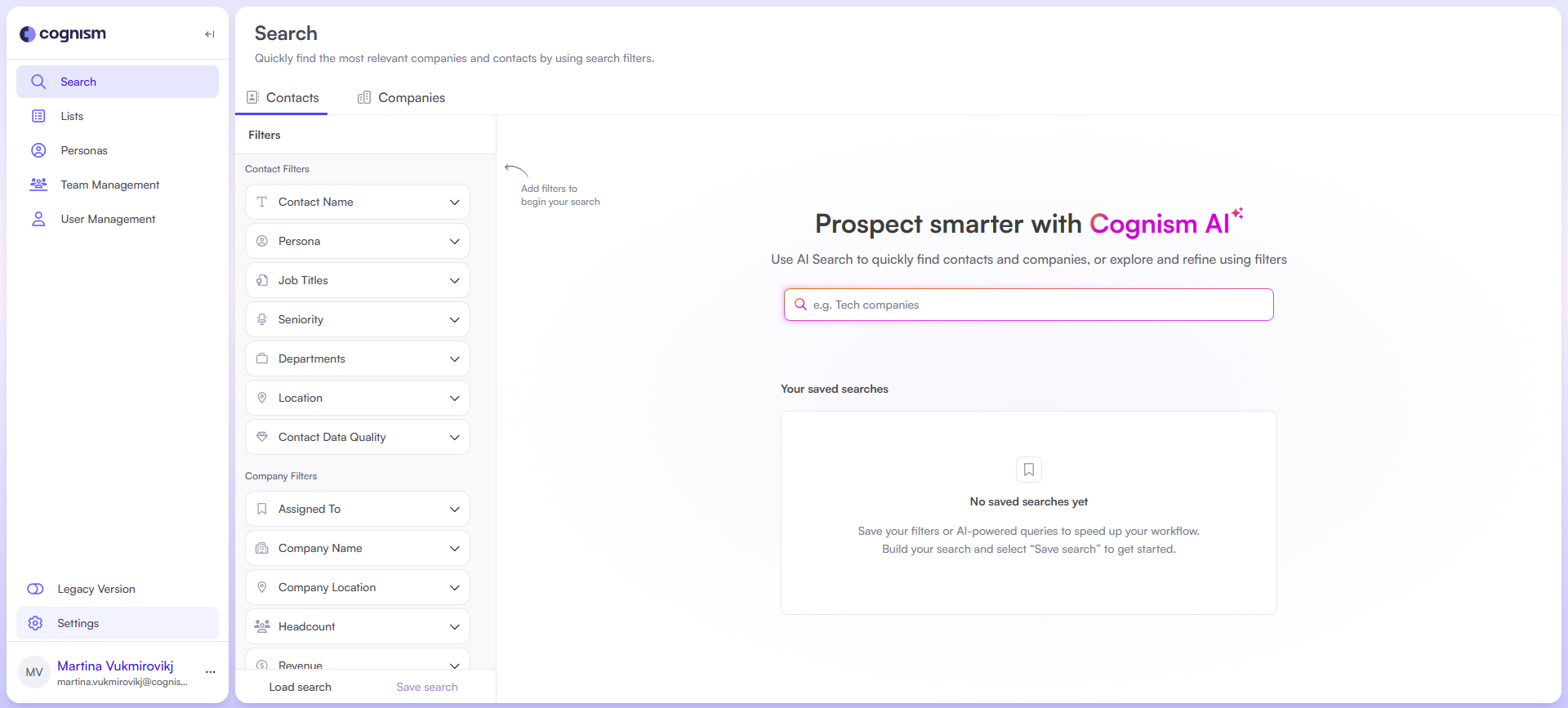 - Export contacts from Cognism