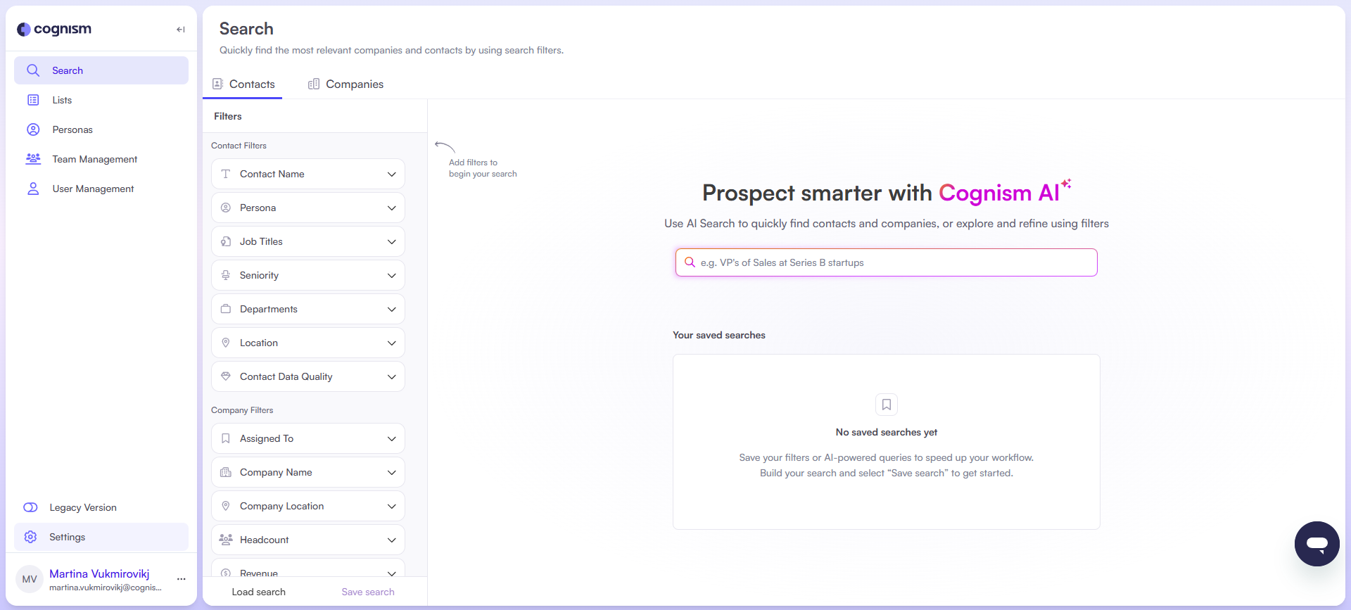 - Export contacts from Cognism Lists