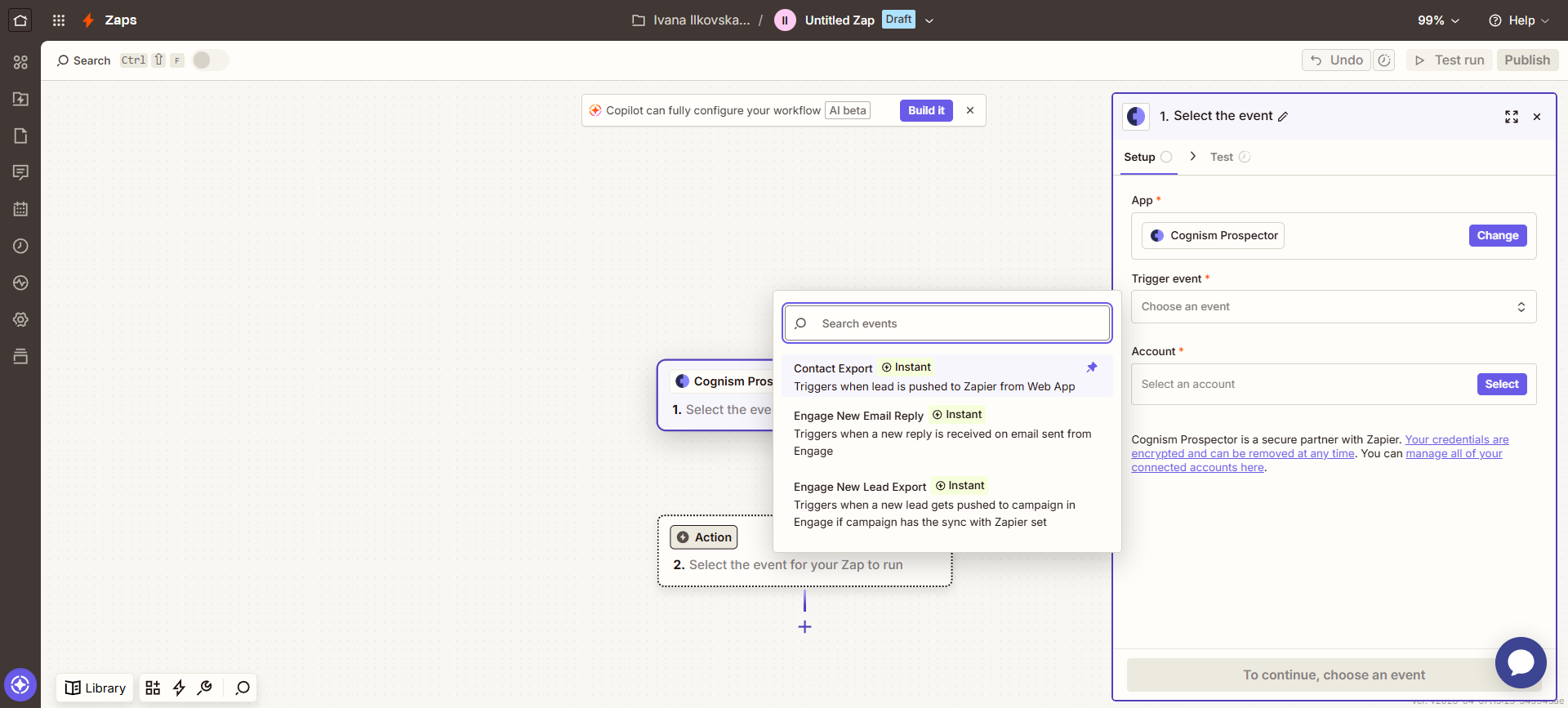 - Choose Cognism as the trigger app.