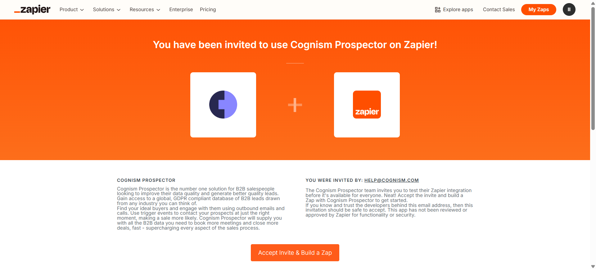 - Select Accept invite > build a Zap.