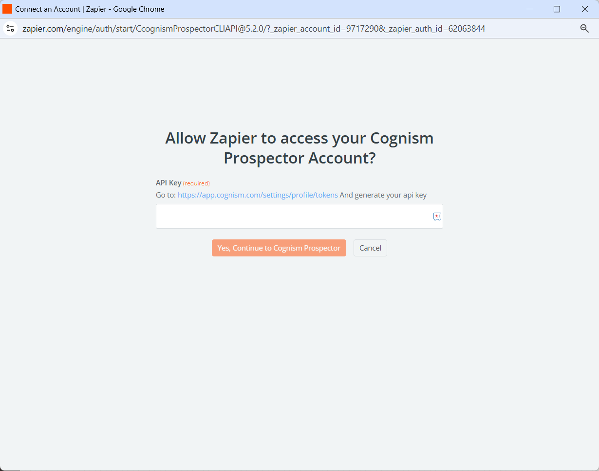 - When prompted, enter your Cognism API key.