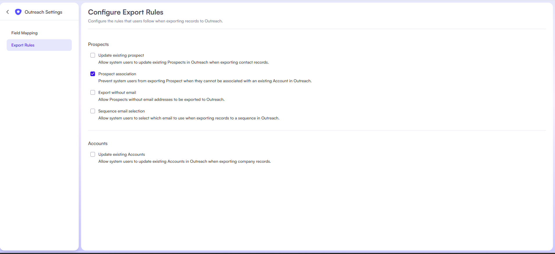 By configuring field mappings and export behaviour, you can ensure accurate data transfers, consistent records, and better alignment with your outreach workflows.