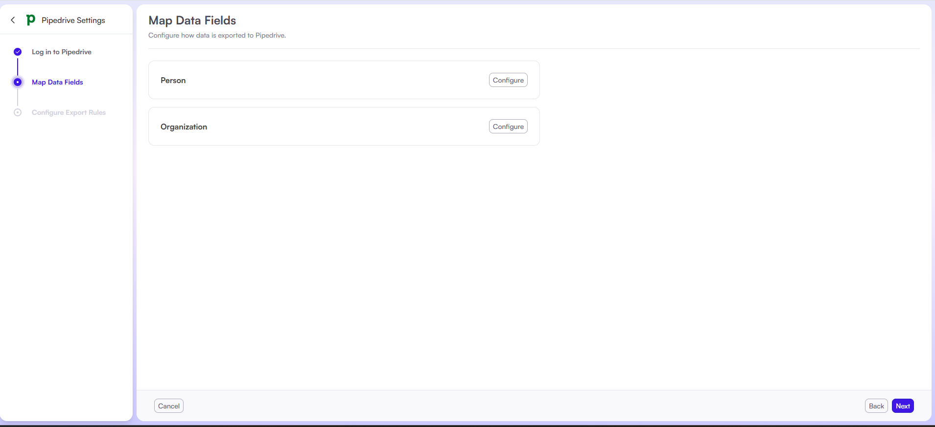 You must be logged in to Pipedrive to access the field mapping settings.