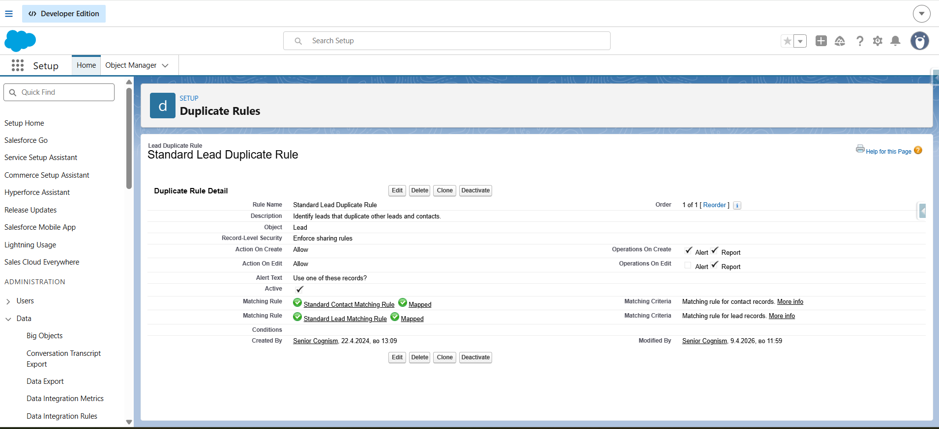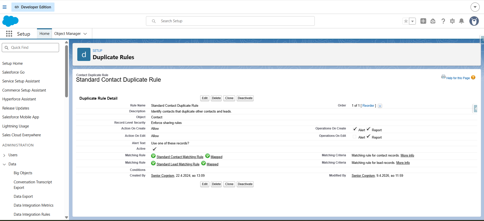 How to set up duplicate and matching rules in Salesforce, including custom matches, to prevent duplicates and maintain clean CRM data.