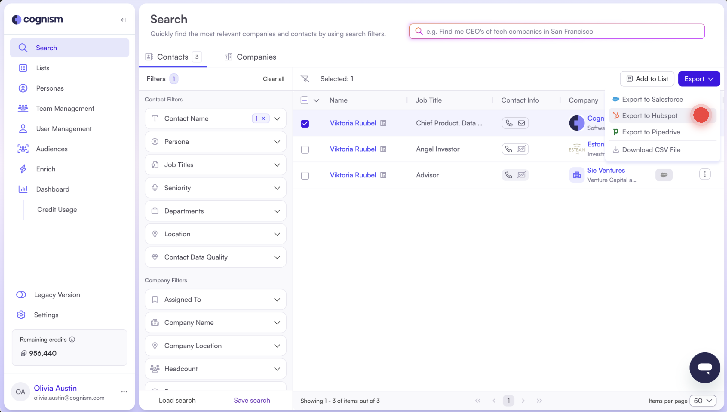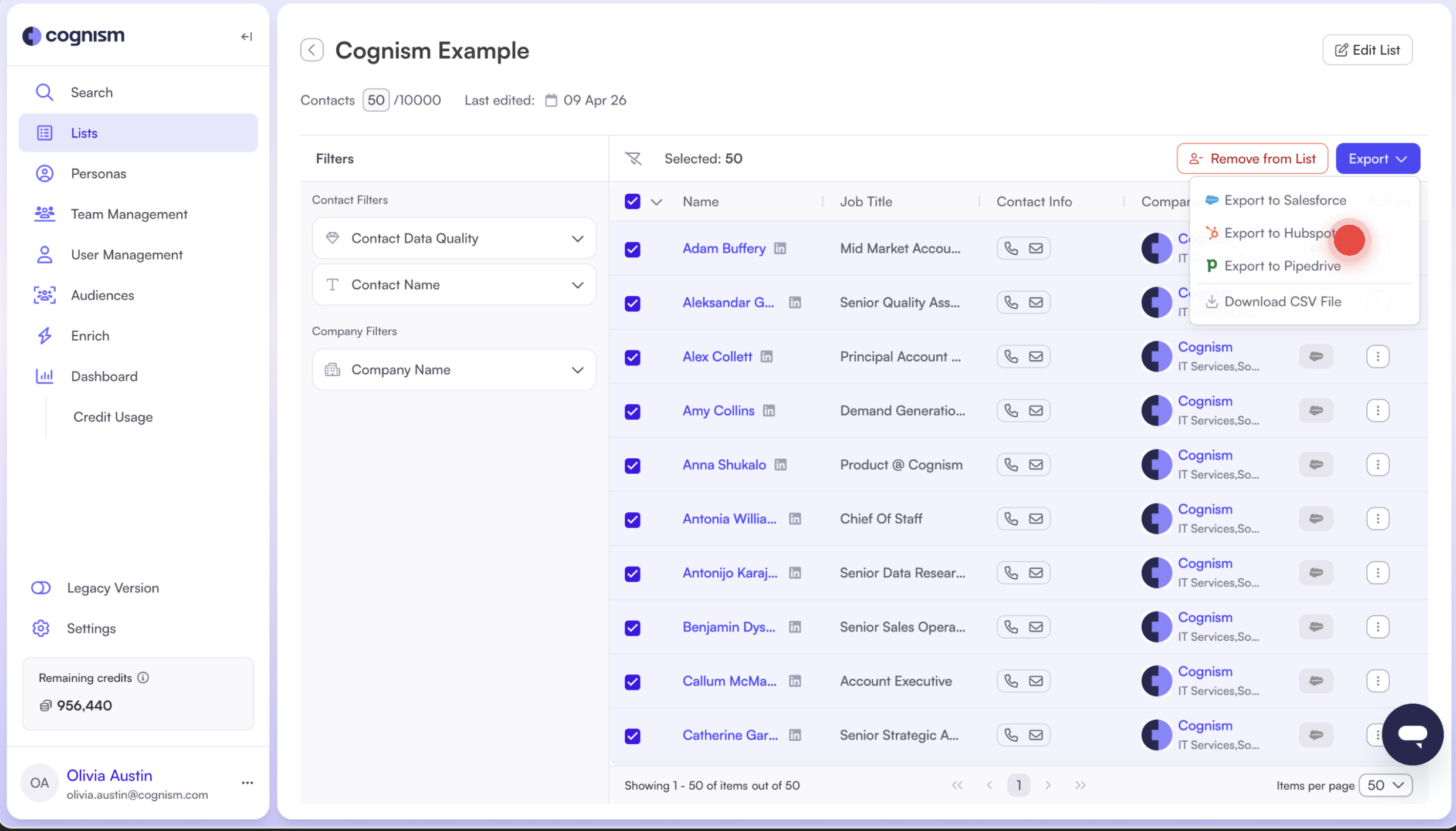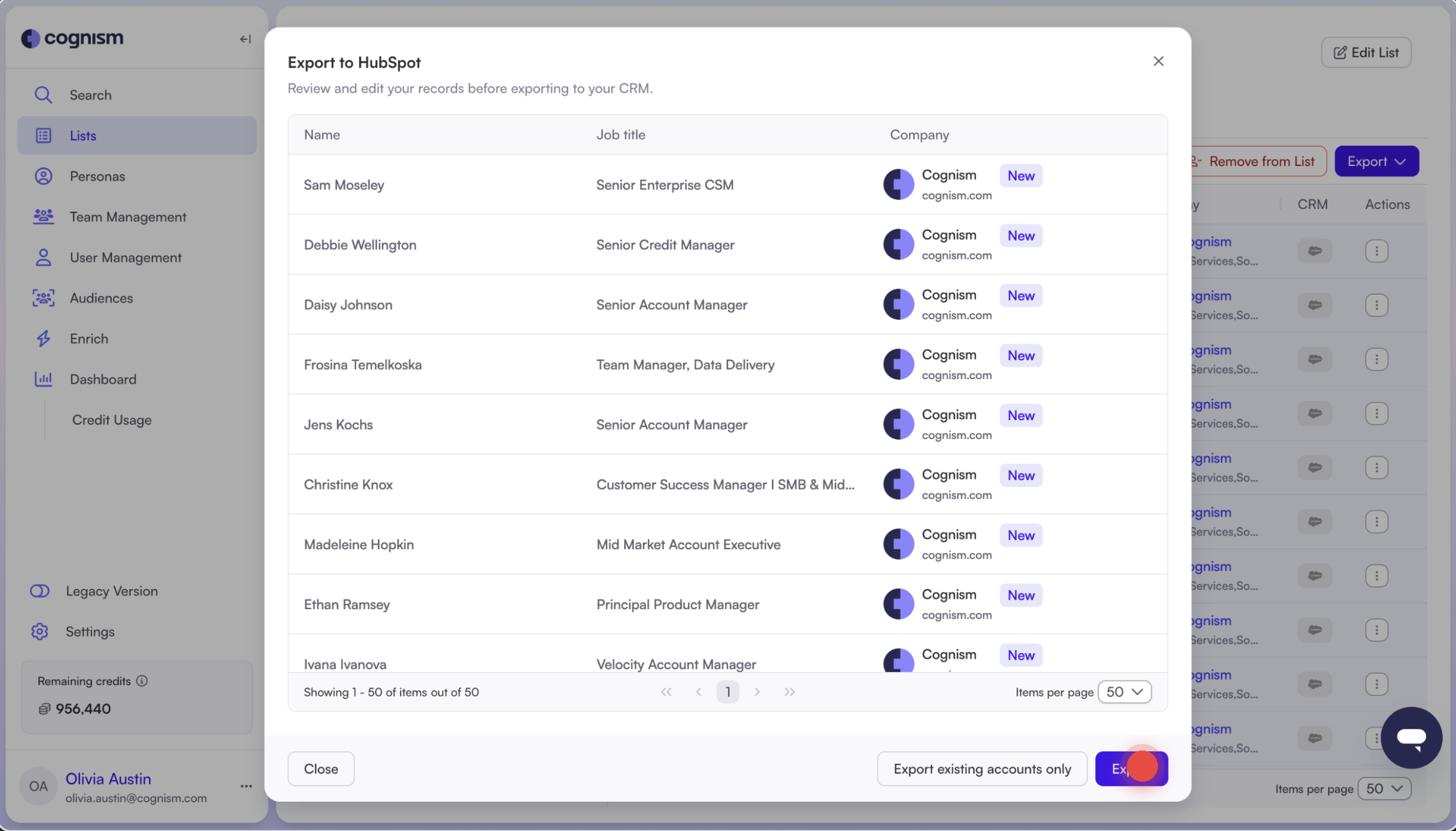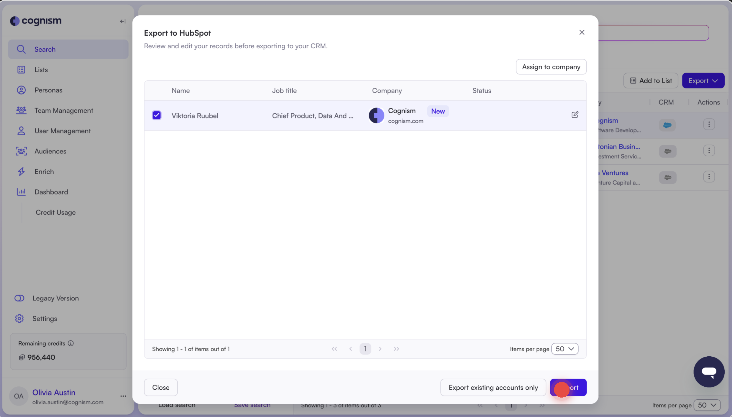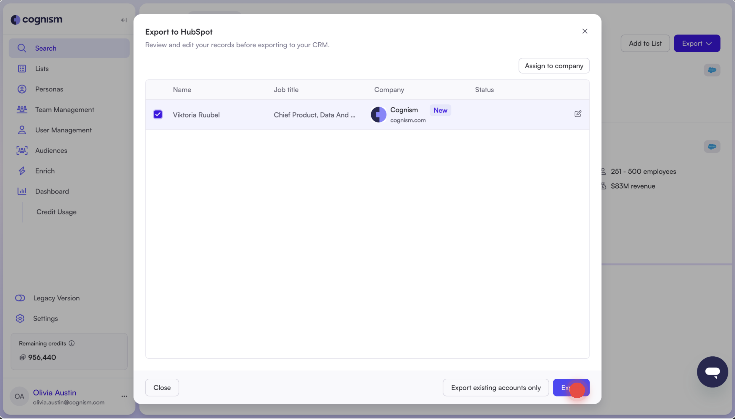 Learn how to export and sync contacts from Cognism to HubSpot and track CRM status directly in the platform.