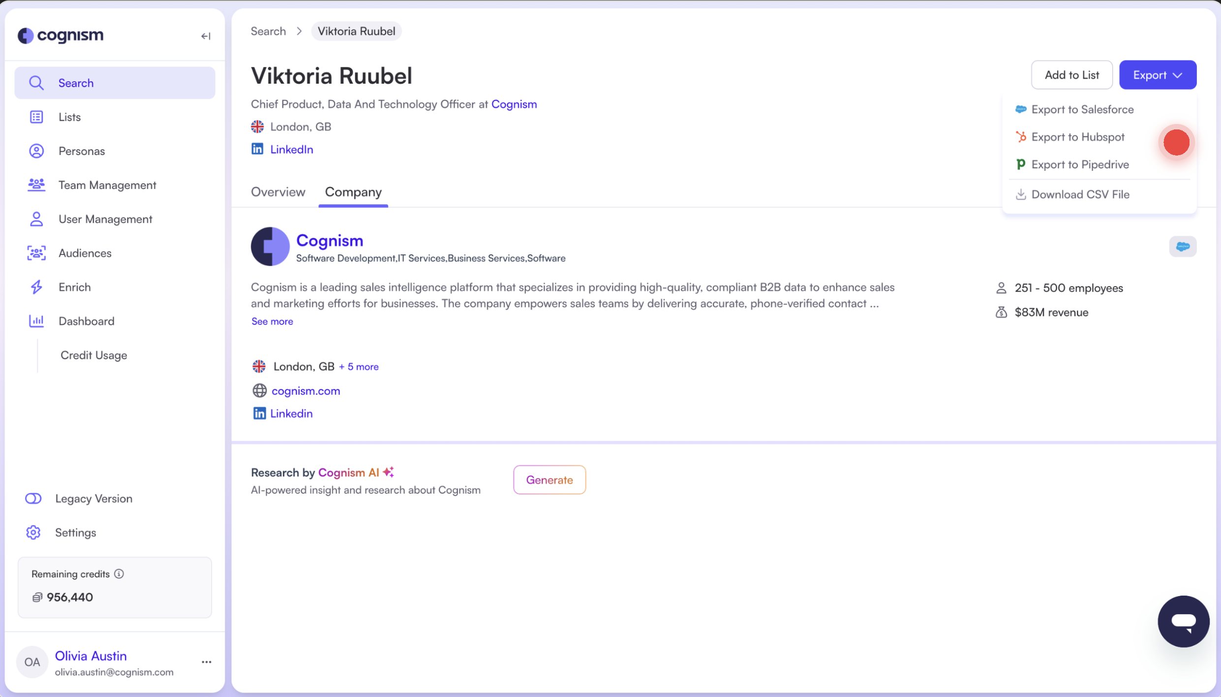 Export from the Cognism Chrome extension