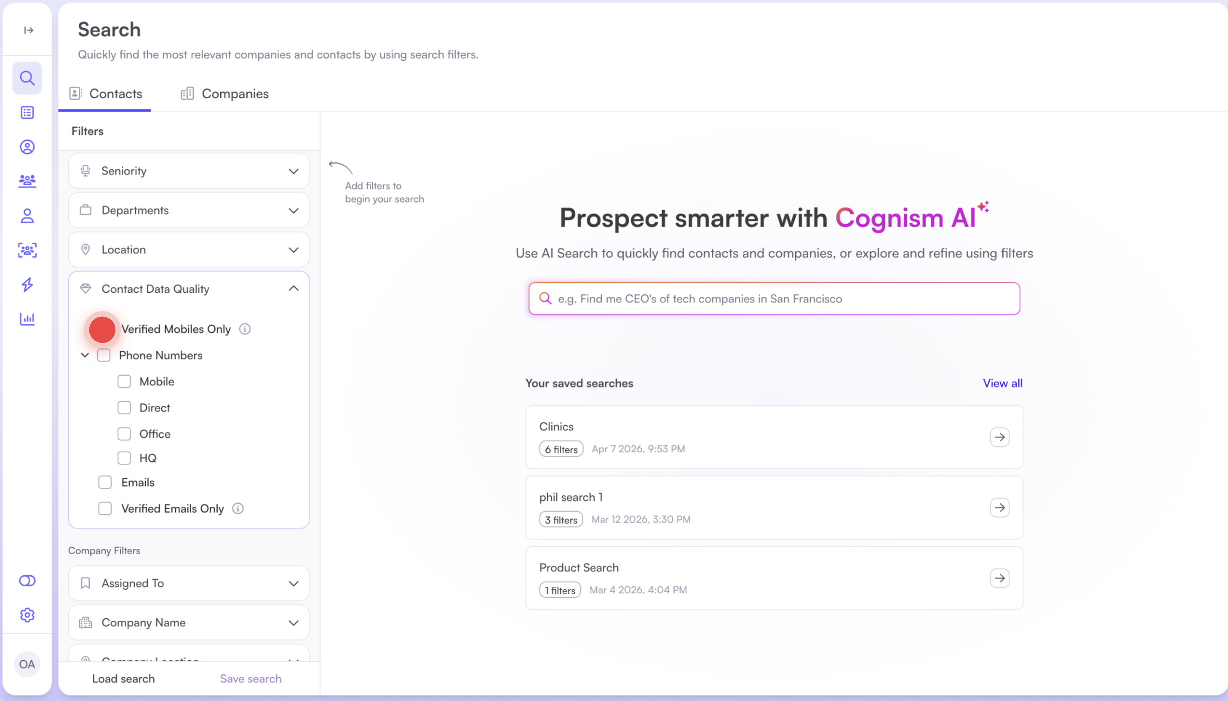 Learn how to use contact data quality filters in Cognism search to refine results and find high-quality, reliable contact data.