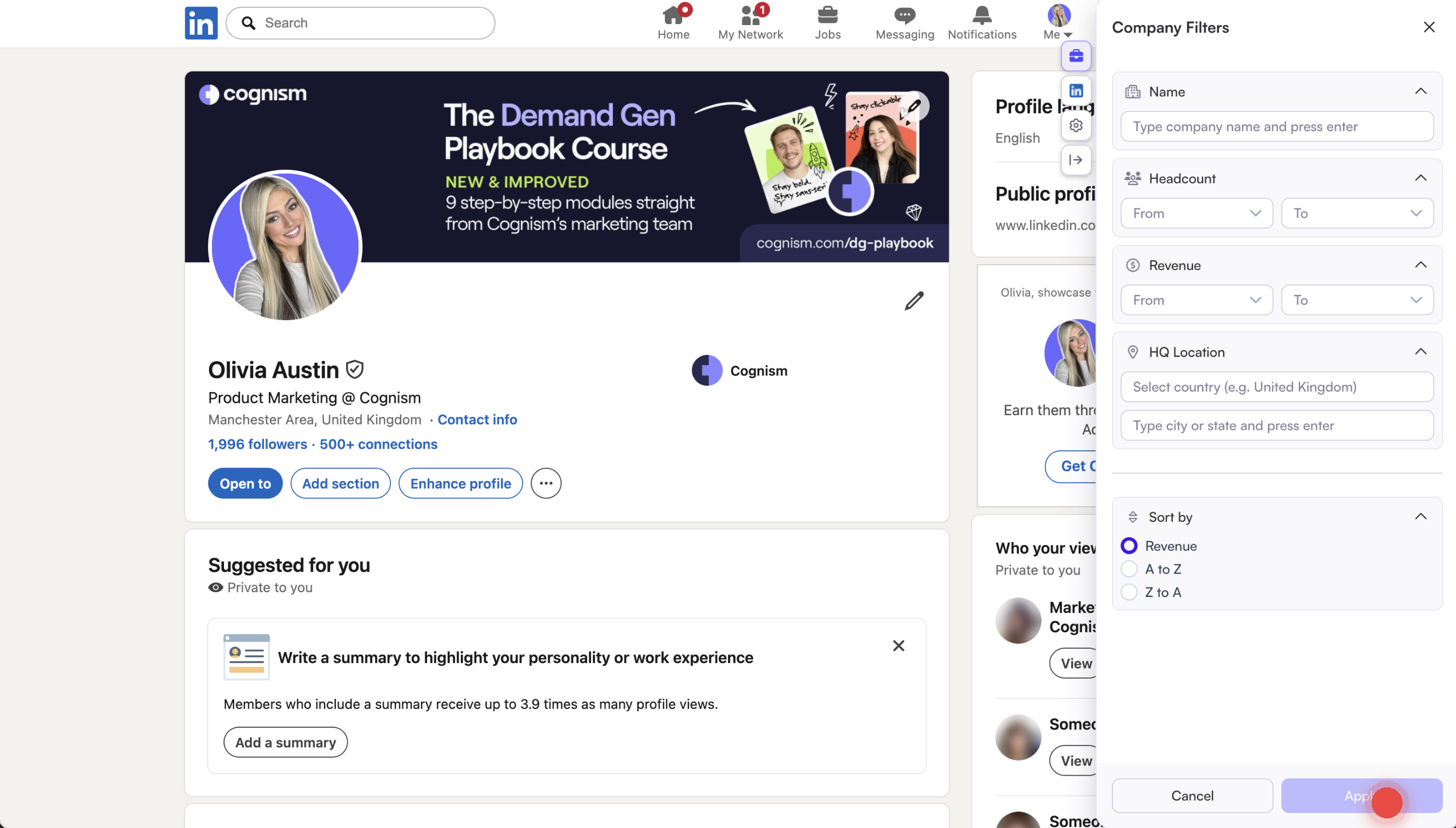 - Open the Cognism browser extension