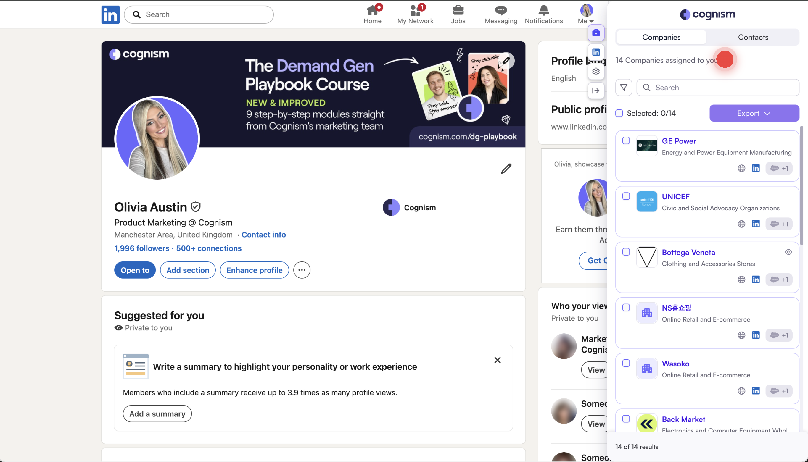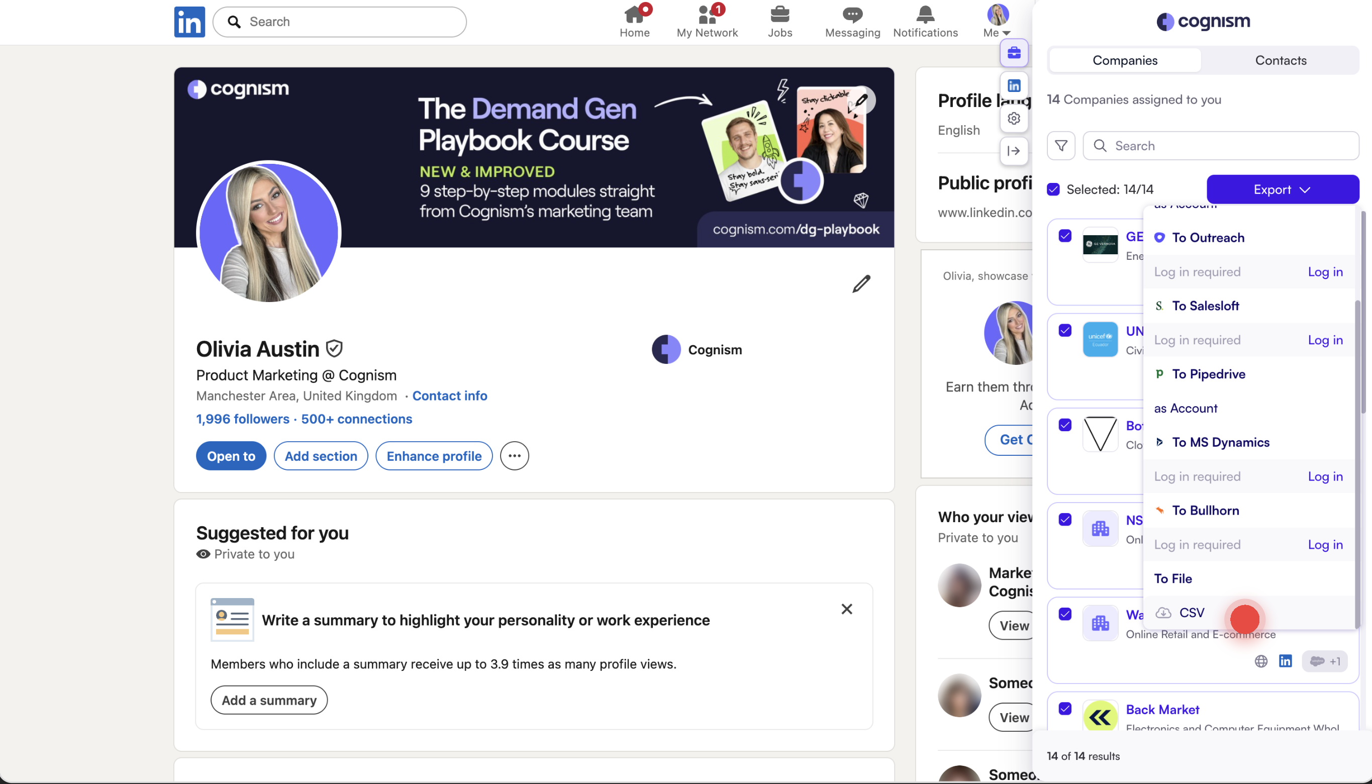 - You have access to the Cognism browser extension