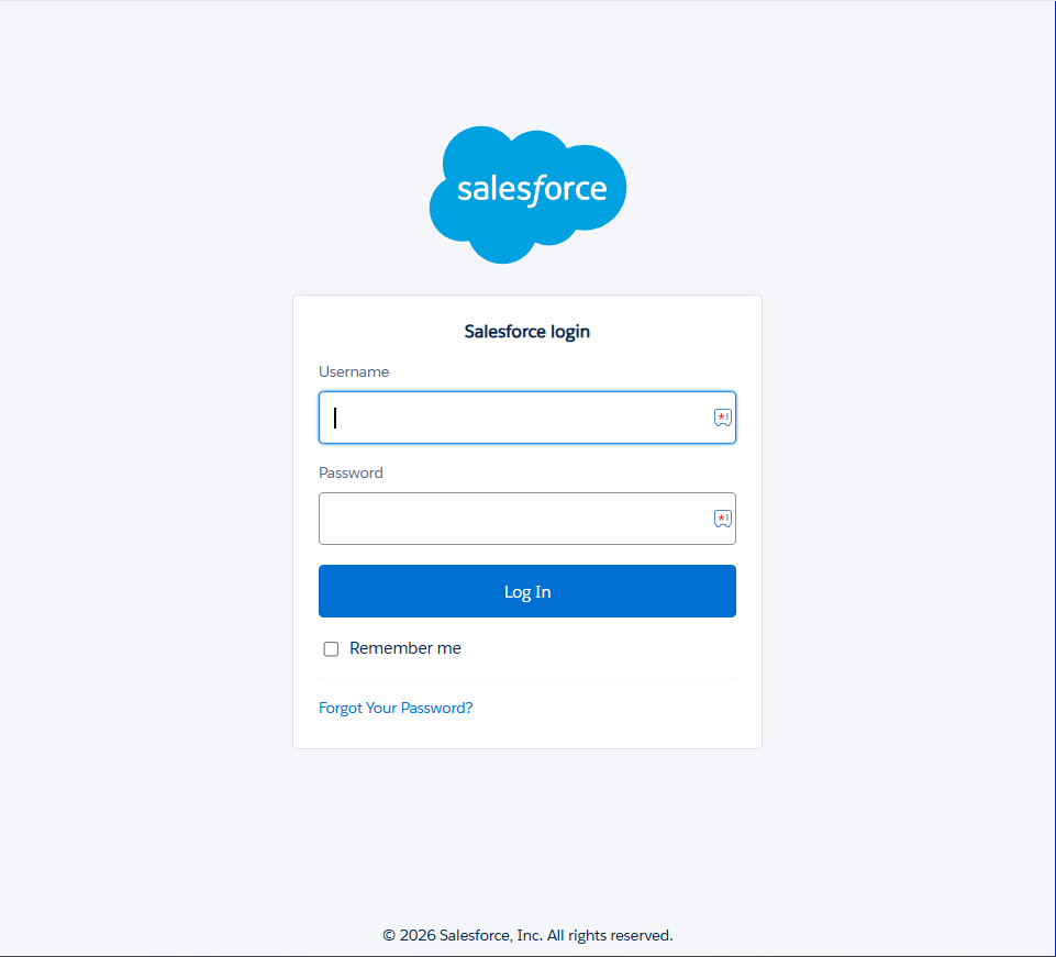 - Enter your Salesforce credentials and complete login.