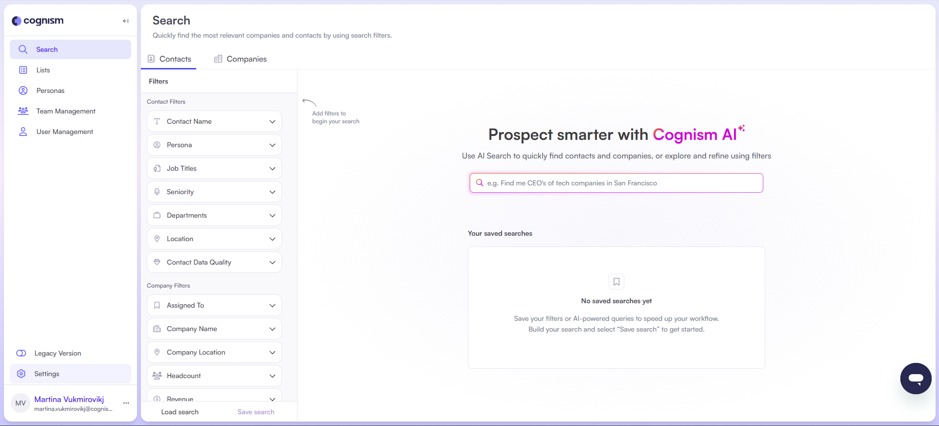 - Log in to the Cognism web app.