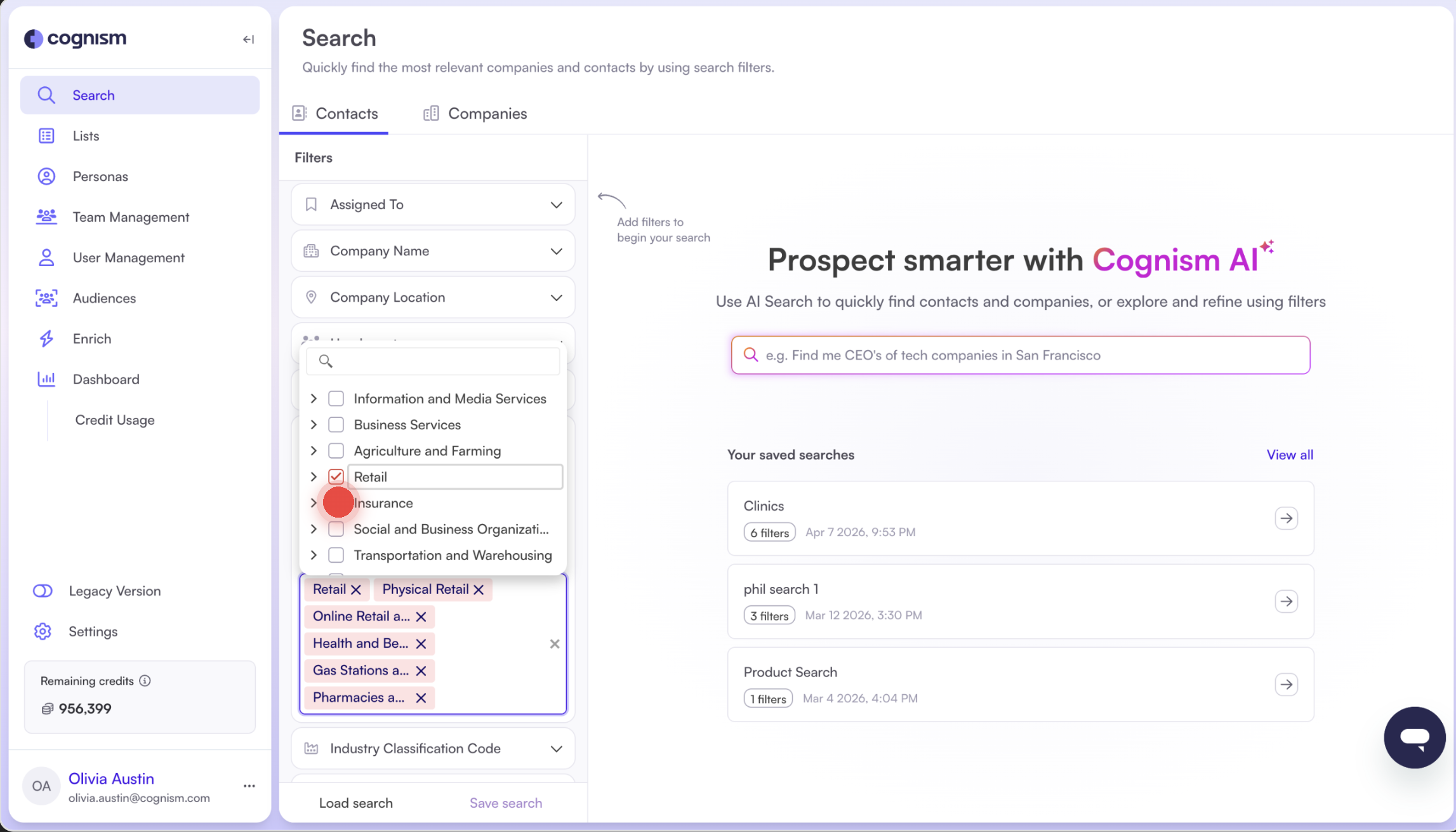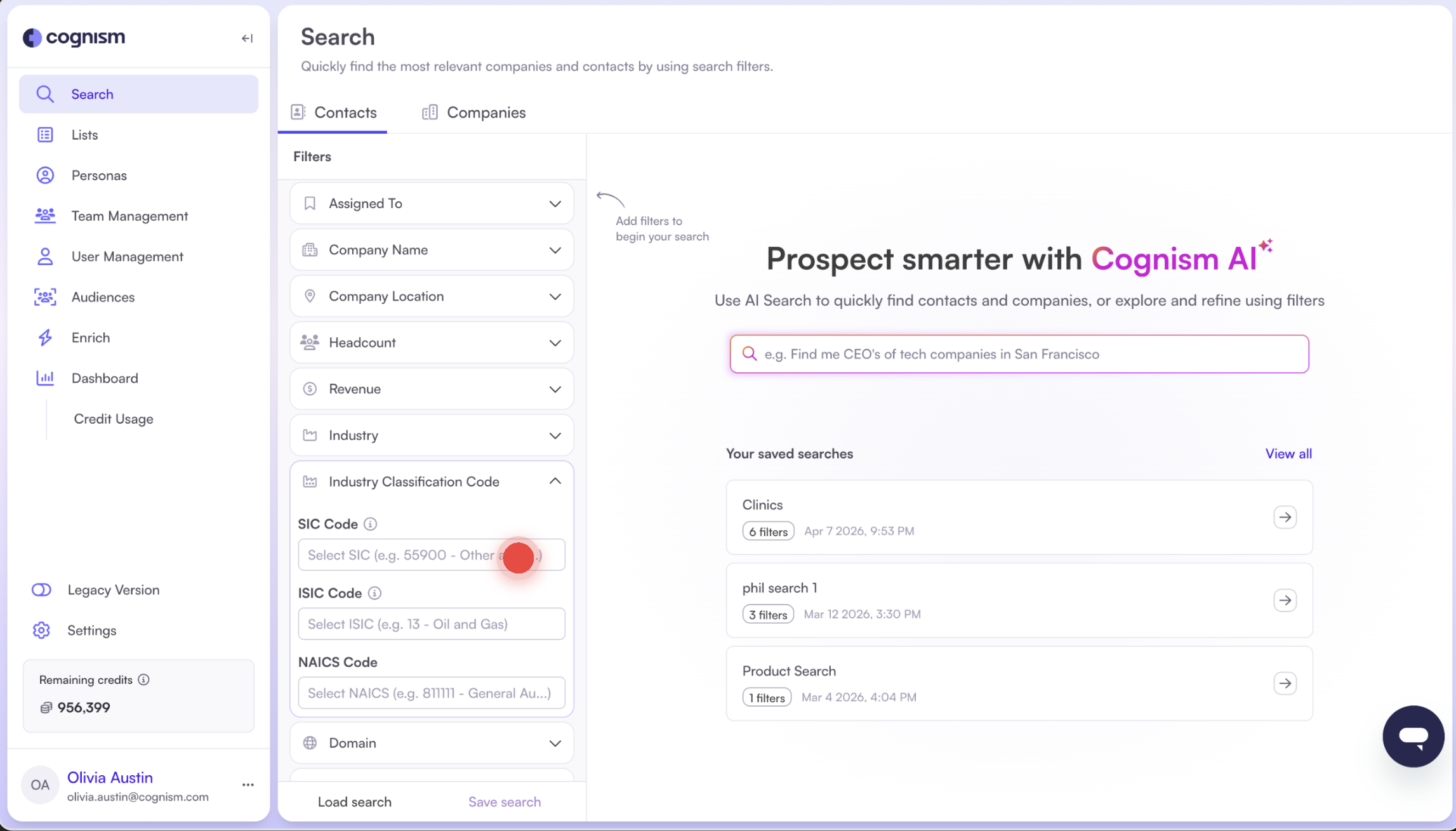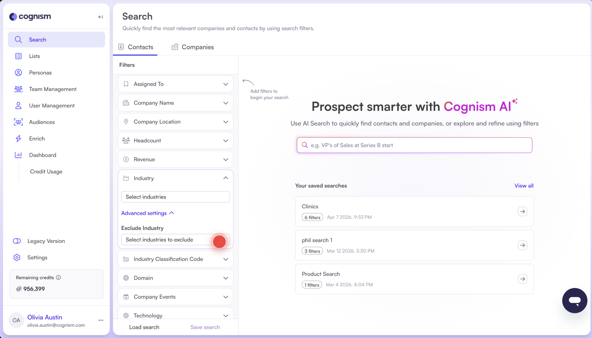 Once applied, your search results will only include companies that match your selected industries or classification codes. Any excluded industries or codes will not appear in your results.